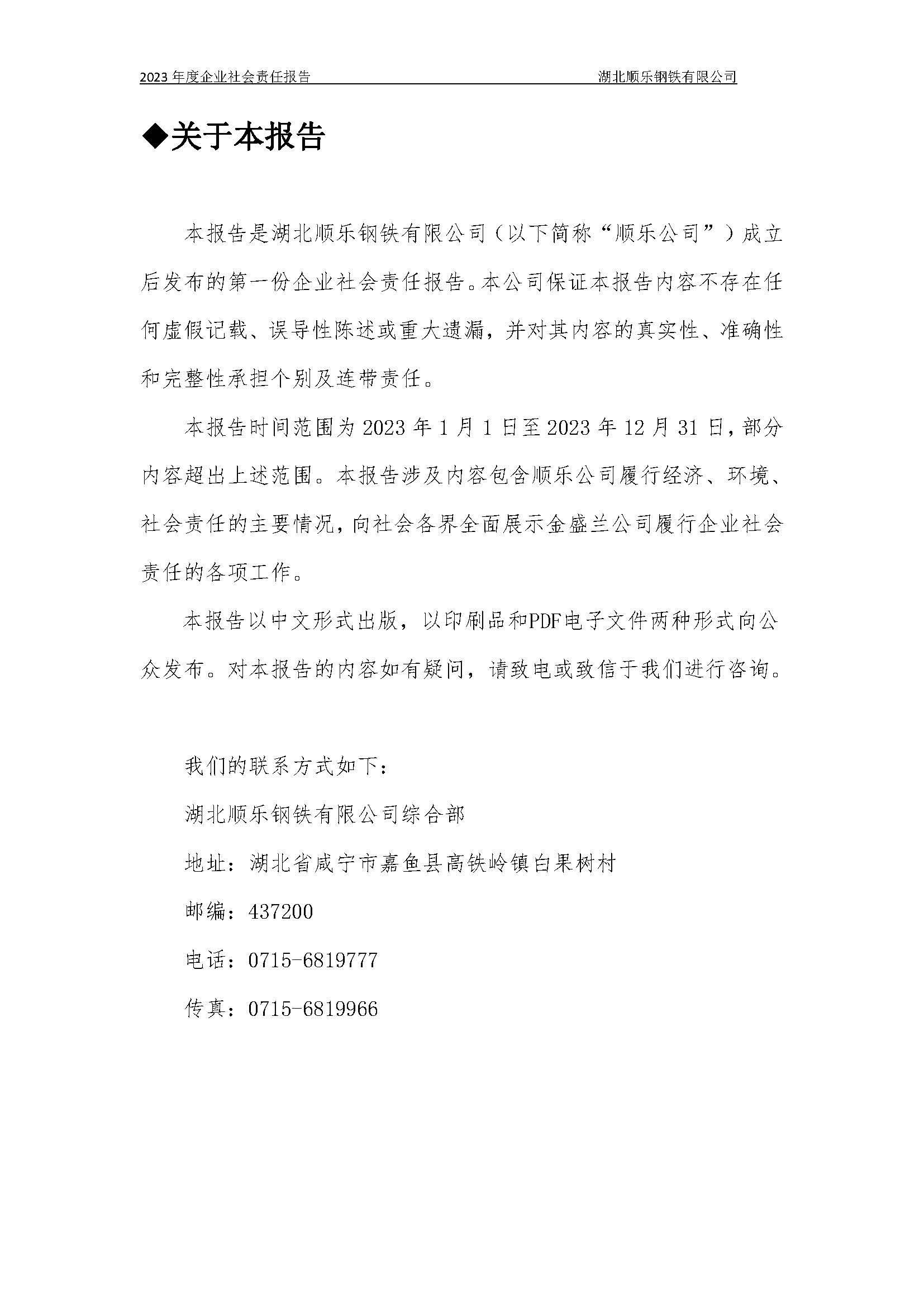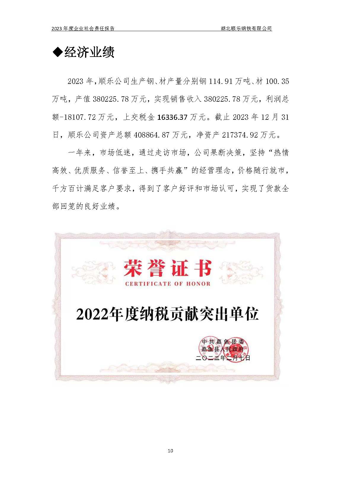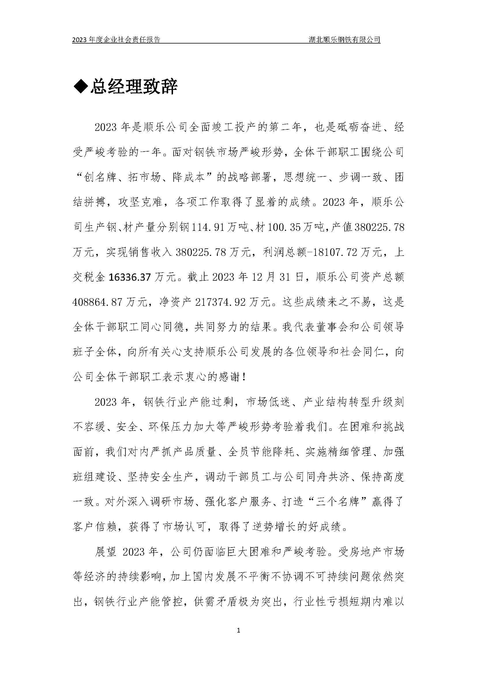 湖北順樂鋼鐵有限公司2023年度企業(yè)社會(huì)責(zé)任報(bào)告