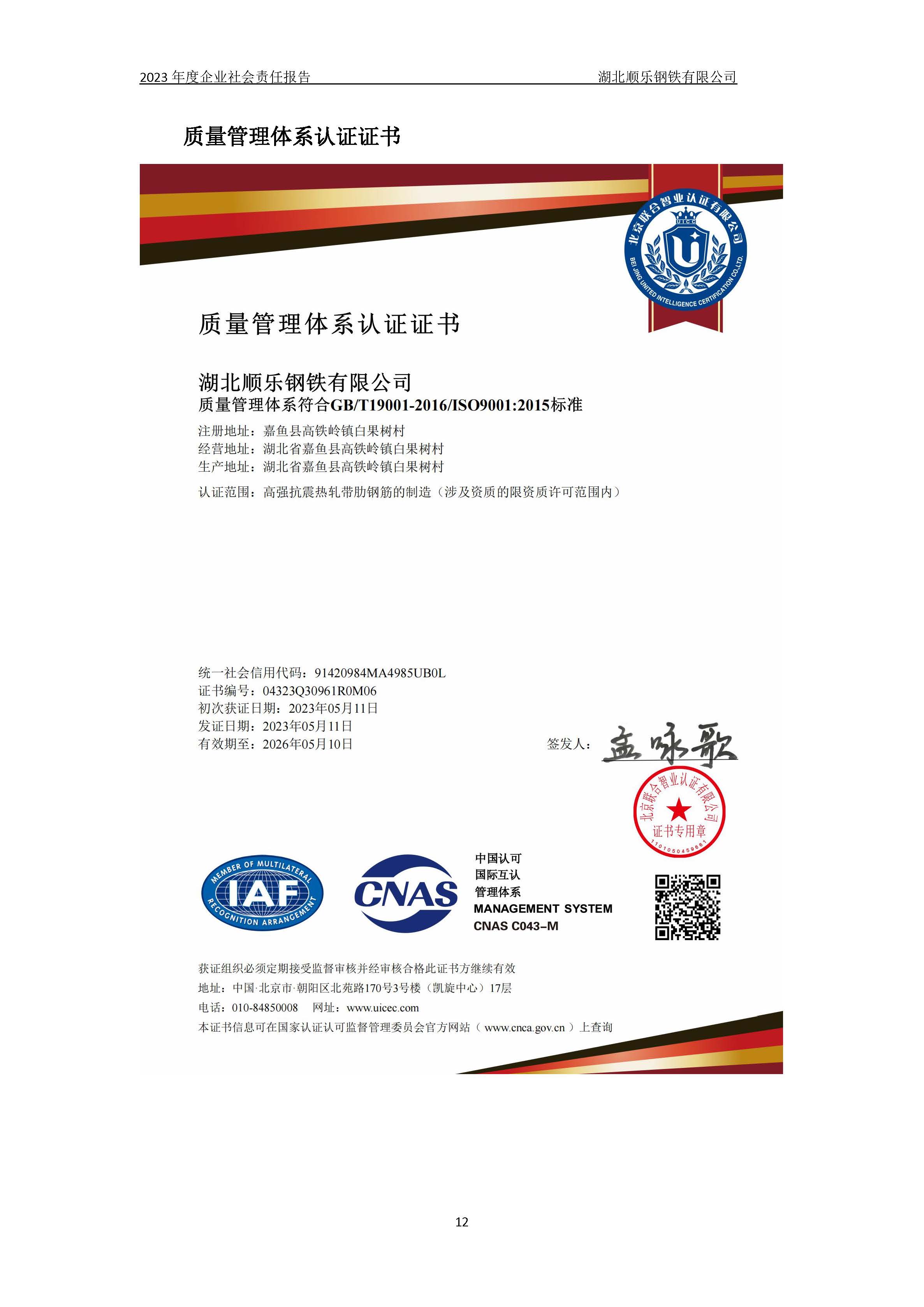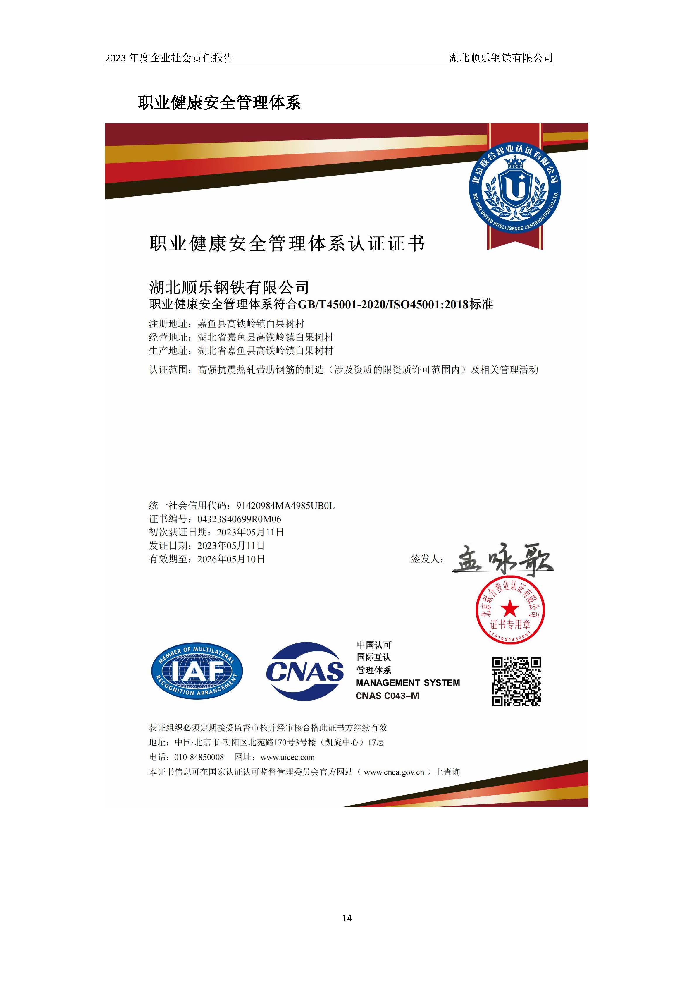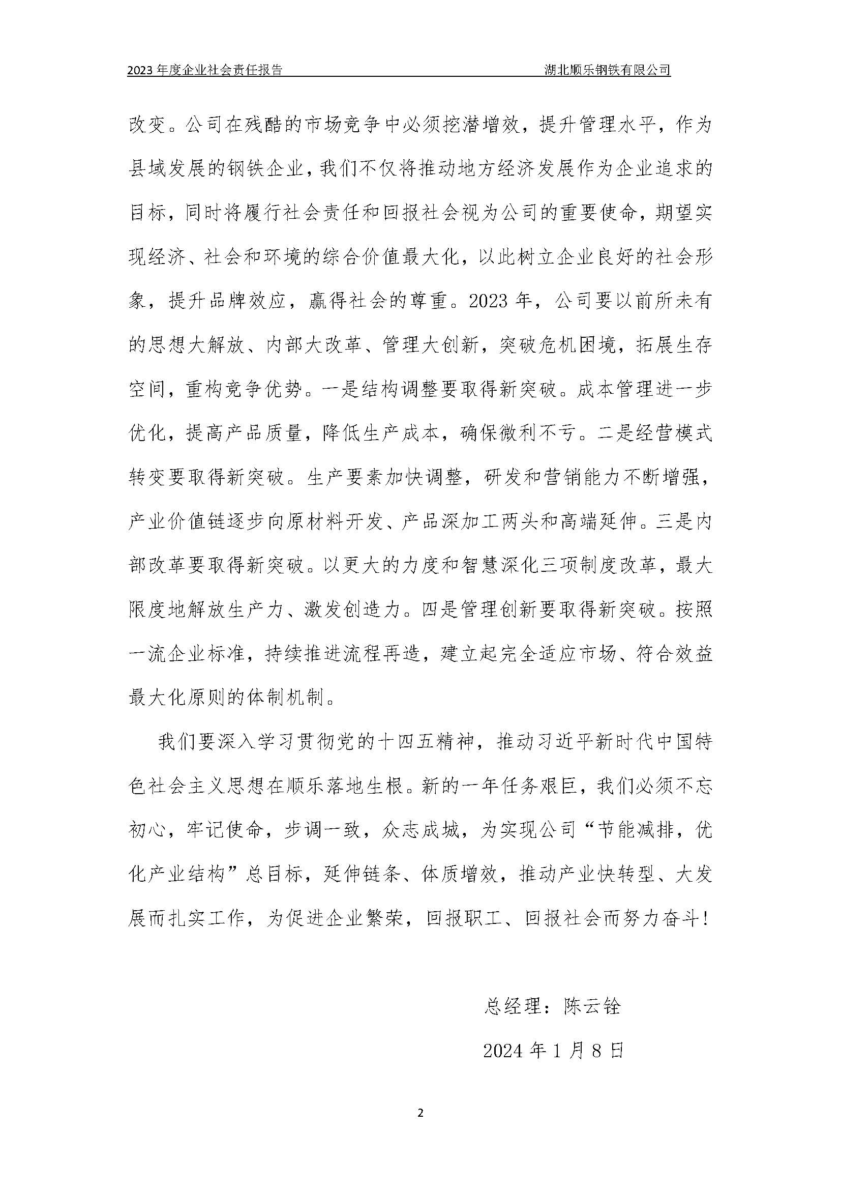 湖北順樂鋼鐵有限公司2023年度企業(yè)社會(huì)責(zé)任報(bào)告